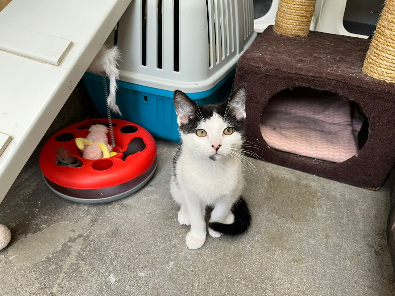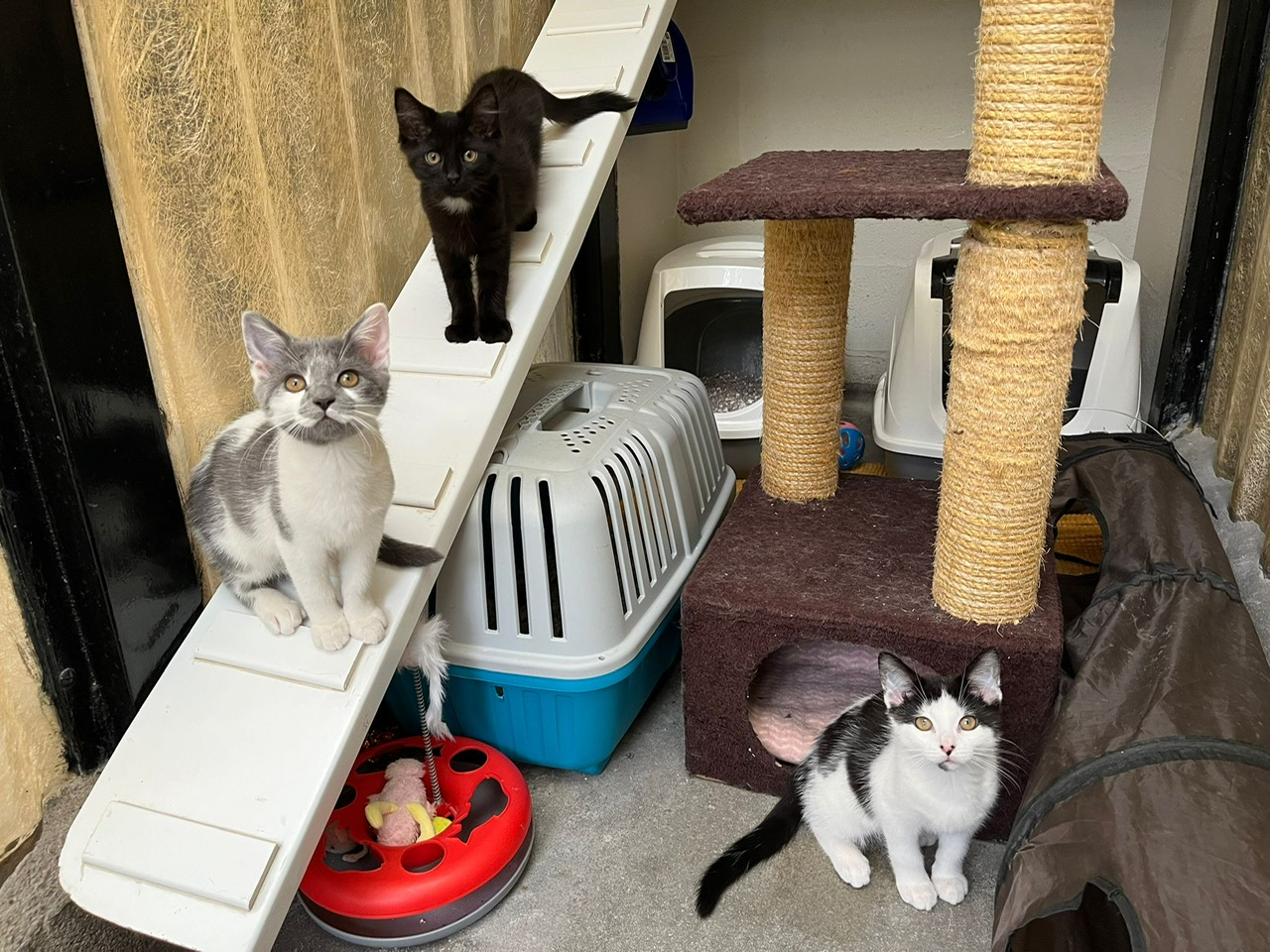 Edward, Lucas & Miles came to the centre with their sisters and mum after their previous owner could no longer keep them. They are quite nervous and frightened little kittens at the moment. They are slowly learning to trust us here at the centre and have improved so much from when they first arrived. They will need quiet and patient adopters who will help them overcome their insecurities and help them settle in to their new home.