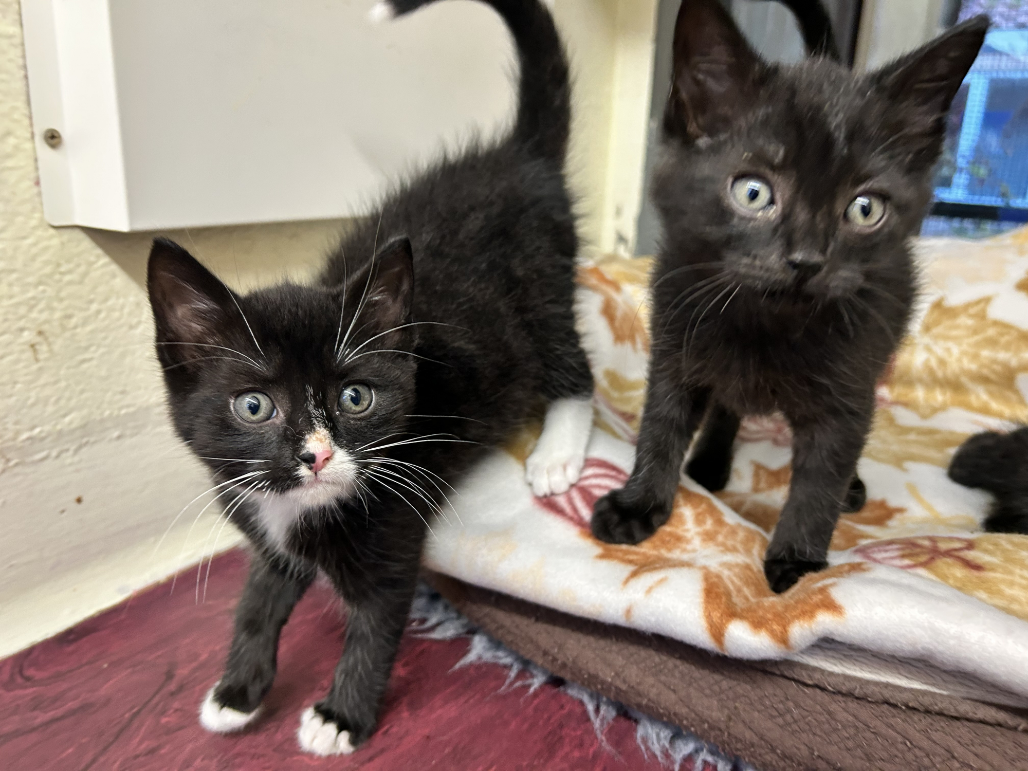 They will need adopters who are at home most of the time while they are still so young. They will be getting homed together.